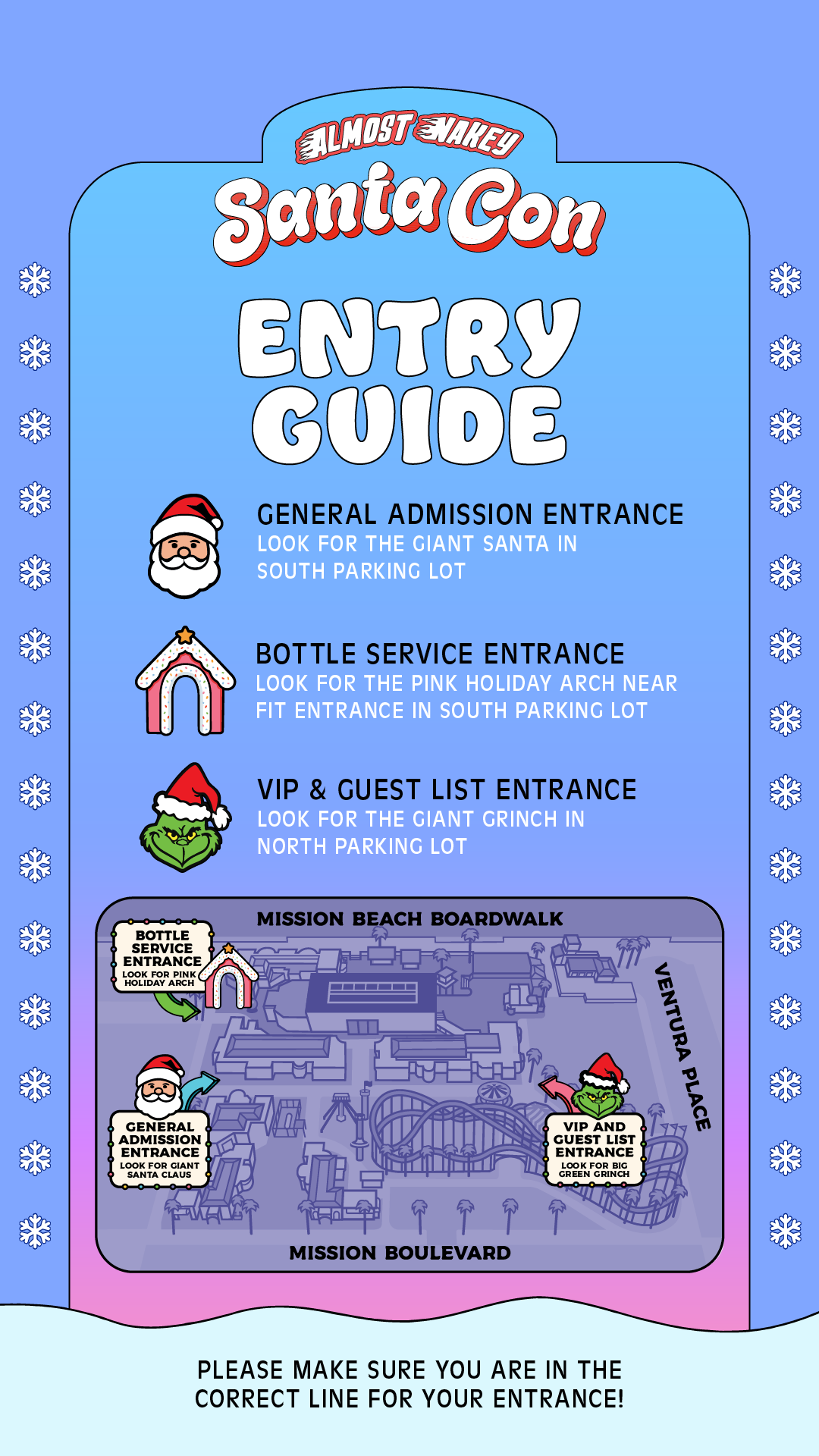 4 pack is perfect for you + 3 HO-HO-HO's to run wild at Almost Nakey SantaCon inside our Christmas wonderland at Belmont Park + Beach House includes access to: ALL Belmont Park rides, 4 stages, ALL activations.